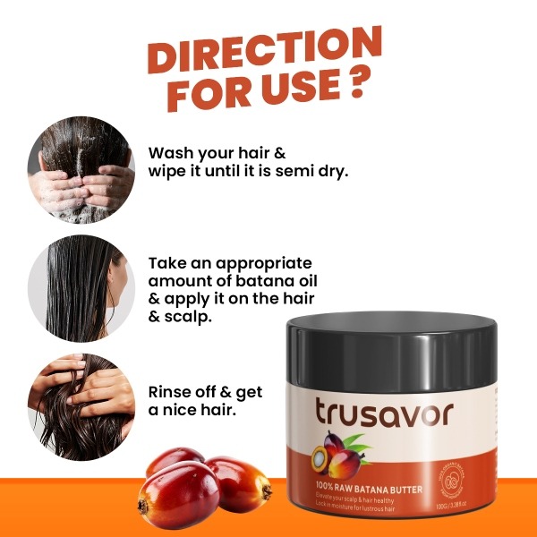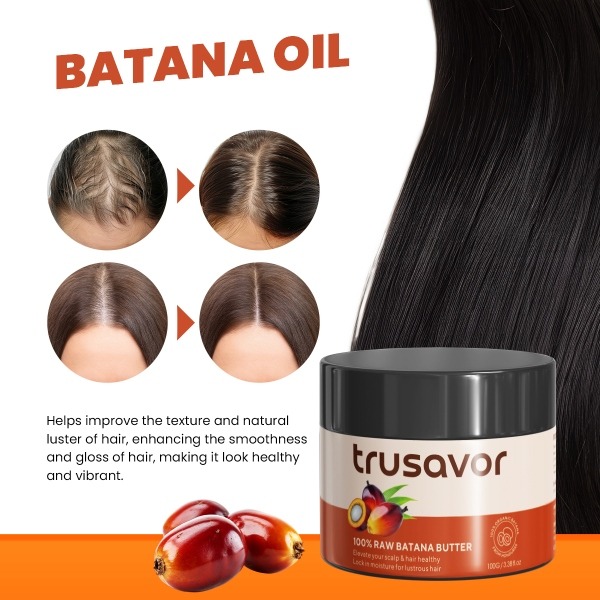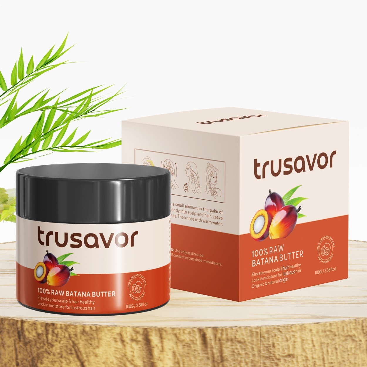 Discover the ancient beauty secret of Batana Oil with Trusavor’s 100% Raw Batana Butter. This premium hair treatment, exclusively extracted from Elaeis oleifera, has been treasured by the Miskito people of Honduras for generations. The lightweight yet deeply penetrating formula helps strengthen and nourish hair while controlling breakage and promoting overall hair vitality. Each 100g jar contains pure Batana Oil with a touch of Rosemary Oil for fragrance, creating a natural solution for your hair care routine. Simply warm a small amount in your palm, massage gently into scalp and hair, leave for 30 minutes, then rinse with warm water. This rare commodity, sourced through traditional extraction methods, provides natural sheen and hydration, leaving your hair feeling soft and manageable. Perfect for daily moisturising, this Australian-formulated treatment offers a natural approach to maintaining healthy, lustrous hair. The convenient 100g/3.35fl.oz size makes it ideal for regular use in your hair care regimen.